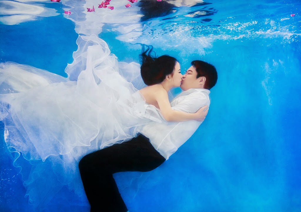 Chụp ảnh dưới nước đang được các bạn trẻ rất quan tâm, bởi những khung cảnh lãn mạn, uyển chuyển và cảm giác cực kỳ thú vị, mới lạ. Để có được một bộ ảnh cưới đẹp và độc đáo, các cặp đôi cũng cần phải chuẩn bị cho mình những bộ trang phục và những phụ kiện đi kèm. Đặc biệt, để có thể chụp hình thoải mái và tự nhiên nhất, các cô dâu chú rể cần phải tập mở mắt dưới nước và tập diễn sao cho được tự nhiên và hấp dẫn nhất.